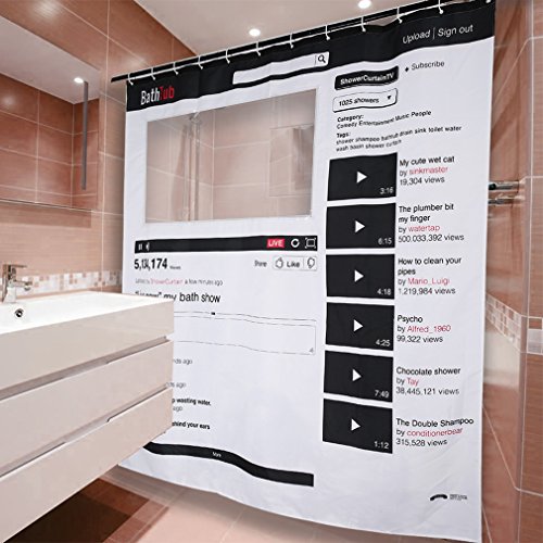 Original cortina de ducha BathTub para casa o para regalar a los cantantes de la casa o de la pandilla. Original diseño a modo de perfil de YouTube para que improvises tus mejores canciones mientras te duchas. La ventana dónde se visualizaría los videos de tu canal está colocada estratégicamente para que mientras te duchas, […]