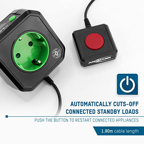 Ansmann 5024083 – Enchufe de ahorro energético para PC (AES3 Zero Watt, con desconexión automática de la red), color negro y verde.