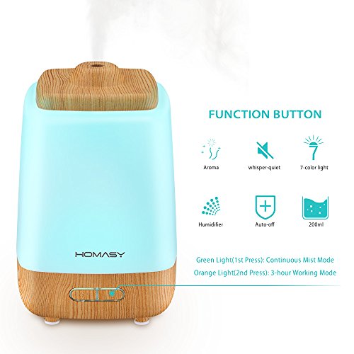 - Con modo de niebla continua y modo de trabajo de 3 horas. 8 horas con el modo de niebla continua. En el modo de 3 horas, será apagar automáticamente después de 3 horas. Ahorro energía, ya que se apagará cuando el agua se agota. El difusor ultrasónico no interrumpa su trabajo o sueño.