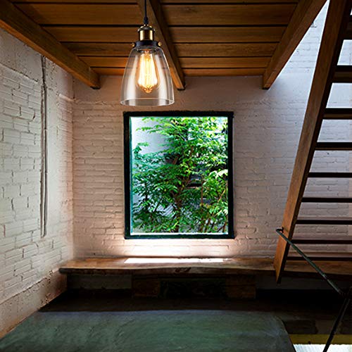 Original Lámpara de techo de la marca Glighone vendida desde Amazon España. Lámpara de techo de aspecto industrial con tulipa de vidrio transparente con forma de tazón. Apto para cualquier uso, comercial o en casa.