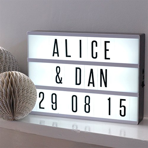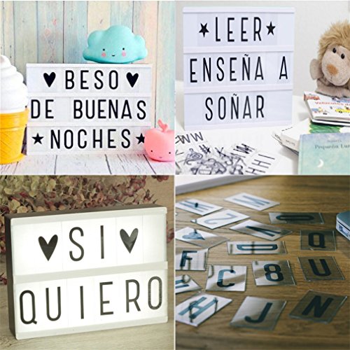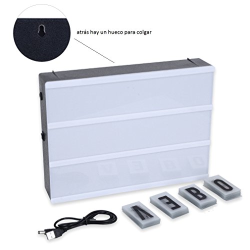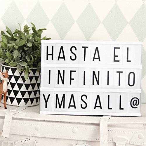 Creativa caja cinema de la marca RYC, vendido desde Amazon España. Conocida como : Caja Cinema, Caja Cinematográfica, Caja de luz de cine, Cinema LED y Lightbox LED. Es perfecta como fuente luminosa y para dejar notas a la familia, y porqué no también ideal para decorar un espacio de trabajo y dejar notas en ella gracias a las 90 Letras y Símbolos que contiene la hace perfecta también para los comercios y otros usos, dale rienda suelta a la creatividad con este excelente y versátil producto que además se puede colgar de la pared.