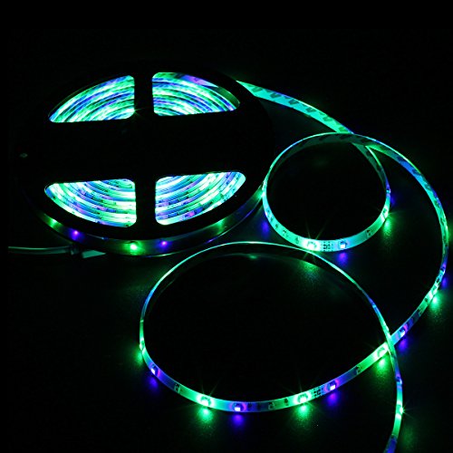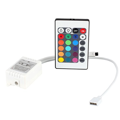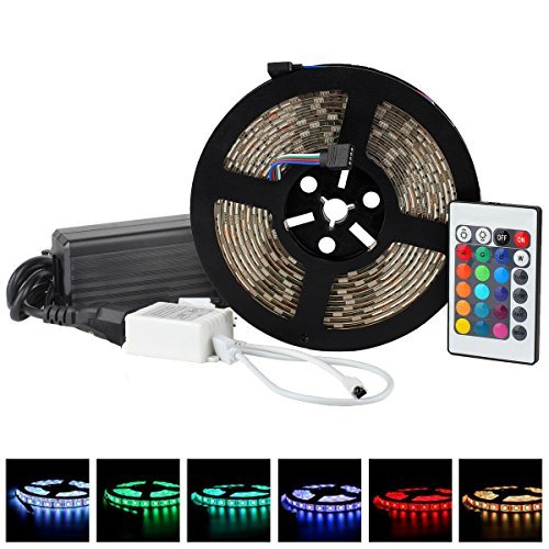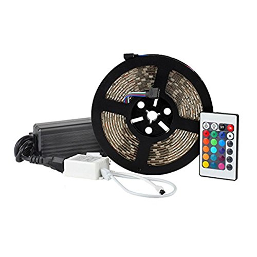 Con el mando a distancia IR puede controlar su tira de Luz LED con facilidad su Tira de Luz Impermeable (Nivel impermeable: IP65). LED Flexible 16.4ft 5M (RGB) 3528 300 LEDs + 24 Teclas IR + Remote Control + Adaptador (EU) 12V 5A de la marca DUMVOIN